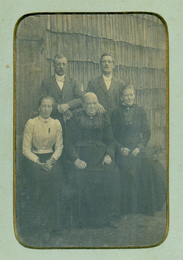 Die Fuhrherren-Witwe Augustine Wilhelmine Louise Bormann, geb. Gärtner, 1831 – 1912, überlebte ihren Mann Heinrich Carl Wilhelm Bormann, 1824 – 1894, um 18 Jahre. Auf der um 1900 entstandenen Aufnahme sitzt sie mit vier ihrer insgesamt sieben Kinder vor der Gartenfront des Bormannshauses – im Artikel mit „assec. 41“ bezeichnet – in Buntenbock, jetzt Am Brink 5. Der Fuhrbetrieb wurde zu dieser Zeit noch durch den Sohn Christian (im Foto links) aufrecht erhalten. Der jüngere Sohn Carl (1874 – 1942) wurde Pochsteiger.